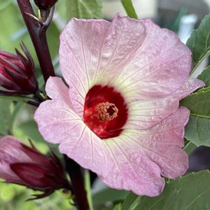 二回目投稿🌺𓈒𓏸 ローゼル、今朝開花していました(о´∀`о) 美人💃💕✨ 元気に仕事行けます☺️