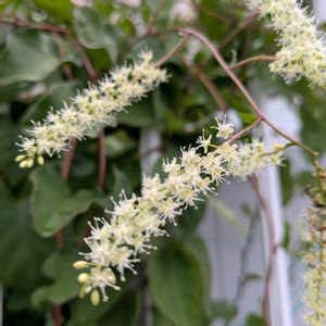 オカワカメ 今年も登ってきました。 ゴーヤとアサガオのために張ったネットでしたが、去年の零れ種で、フウセンカズラも巻きつき、オカワカメも2階まで登ってきていました。 いい香りが漂ってきて、ようやく、オカワカメの花が咲いたことに気がついたのでした😅 このオカワカメは山の先輩から苗を分けてもらって、毎年、忘れた頃に、おそらく芽を出しツルを伸ばして花を咲かせるのですが、気がつくのは2階までツルを伸ばして、花が咲いてからです。 葉もコリコリして食べられます。今年はまだ食べてはいませんが😅 オカワカメさん、今年も咲いてくれてありがとう🥰