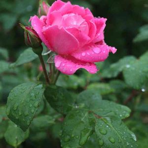 (*ˊᗜˋ*) ノこんにちわ 今日も☔💦の北海道 11番目に開花の🥀 ピンクダブルノックアウト 四季咲きでティーの香り ノックアウトは 優れた耐病性があるから ついた名前だとか...。 あまつゆに濡れて キラキラ輝いていました✨️✨ 小太郎相変わらず体調悪く 明日エコー撮ることになりました😢