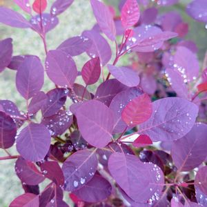 スモークツリー 「ロイヤルパープル」💗💚 霧雨が降る公園で 風にゆれながらキラキラしてた
