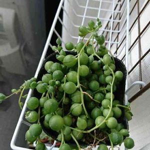 実家のお向いさんのルビーネックレス この前分けて頂いた本体です💎 ちぎる時にポロポロ取れてしまったから、頂く前はもっとワサワサしてたような。 お嫁さんが持ってきたとかで、ここのおばちゃんは多肉のこともよくわかってなさそうなかんじ。 「日当たりと水やで」とアドバイスもらいました💧 雨ざらしだけど、こんなに元気! うちの子も垂れるほど増えてほしい