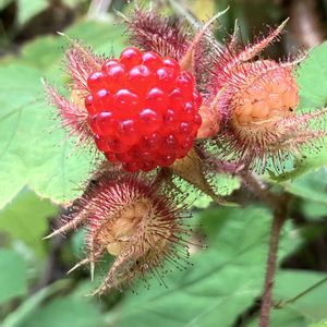 見上げた斜面に赤い実🧡❤️💚 初見です🎶 調べてみたらザラザラ感があるが甘くて食べられるようです🍓