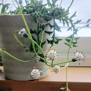 曇天の空の下、開花してました😊 セネシオ属って感じのお花。白寿楽はグリネ等と違い上に伸びるタイプ。種小名はsitorifolmisのようだけど意味は小麦粉…?白い粉ってことかなあ🤩