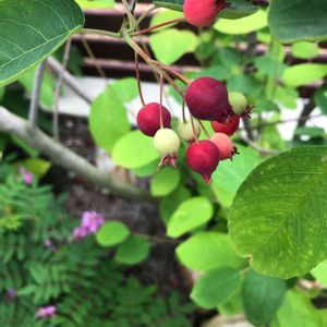 ジューンベリーの実⸜(*ˊᗜˋ*)⸝🔴🔴🔴 🏷真っ赤な火曜日に乗っかります😆🙏 考えたらウチの庭、赤いお花ってないなぁ🙄💦 初めて味見… 甘い😳🔴✨ そしてほんのり梅のような爽やかさ✨ ジャム作ってみるかな‹(*´ㅂ`*)ゎ‹ゎ‹
