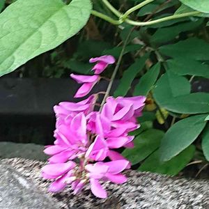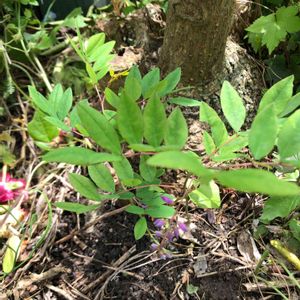 おはようございます🤗 庭ふじとコナスビ 庭ふじは石の間からでているのよ。 実際に見に行った所は、石かけのあいだから、沢山咲いていて、見事な光景を思い出して、私も石の間に植えたのが正解かな🤔