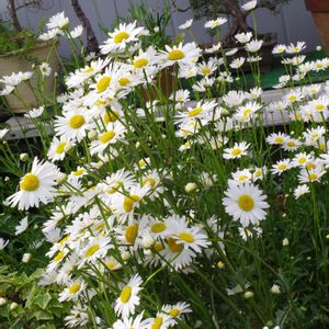 🍀 シャスタデージー🍀 マーガレットに似ていますが 巨大なコで目測15センチ以上 ありそうで存在感も大‼️ フランスギクに日本のハマギクを 交配して作出した園芸品種です💛