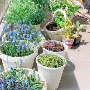 今日のベランダ🌿🌸 冬の寄せ植えが終わってきて葉っぱ多めのベランダです🌱🌿 いつも切り戻しは突然思いついてしちゃいます😆 3種類植えたアジュガ、成長にスゴい差があって手前のチョコレートチップのお花が爆咲きしてます(灬º 艸º灬)❣️🌸