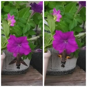小雨降る新宿御苑 10月18日 ①〜④ ガッツァリア ピンク、白 皇帝ダリアの交配種だそうです。 ⑤ 前の週にも行った 💜アメジストセージ💜のエリア 今回はホシホウジャク(下)いっぱい飛んでる、と思ったら、羽の透明なオオスカシバ(上)も。 両方を同時に見られるとは🍀 羽音がブゥ〜ン。 🏷️雨粒シリーズ☆