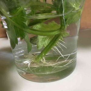 青じそが茎のまま売ってたので水に挿してたらあっという間に根が。 さすがハーブ🌿 土に植えても新しい葉は出ないだろうか。花咲いて実をつけて終わりかなぁ。それでも漬物に使えるし。