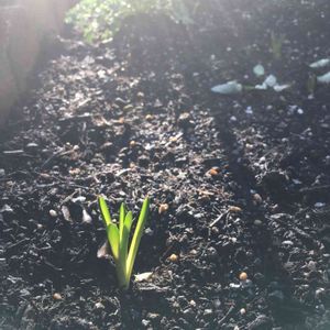 おはようございます。今朝はゆっくりお庭ん見る事ができました。初めて植えたムスカリがもう芽を出しました。先週くらいに植えたような…。寂しい花壇でしたが、期待で膨らみました。春が楽しみです