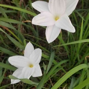 河川敷の荒れ地ですが白いのも沢山咲いてました。 これもゼフィランサスでいいのかな? 普通のタマスダレとちょっと違うような気がするんですけど。
