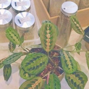 マランタ何とか何とか。 かっこいい!増やせるかな 【結果】 …………水挿しで3ヶ月弱。4月に発根しました❤︎ 5月。ぐんぐん発根中!新芽も模様付きでカワイイ🥰