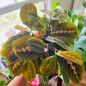マランタ・レウコネウラ・エリトロネウラ 噛みそうになる名前のこの子。 一ヶ月前に挿し芽用に譲っていただけど発根してくれるか心配だった。 今日無事に発根していることを確認したので通常の土に植え替えた🤗 濃さの異なる3色のグリーンと赤い葉脈が好き 裏の紫も合わせるとなんと5色😳 ツル状に伸びるようなので初のハンギングにしてみる 今後が楽しみだ