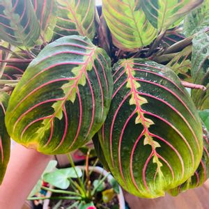 ラテン語で赤い血管という意味の、 マランタ・レウコネウラ・エリトロネウラ。 別名レッド・プレイヤー・プラントです。 夜になると葉が上向きになるので、 🙏しているように見えるのだとか。