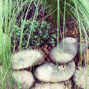 リシマキアの日陰を作ろうと、流木➕ぶどうの木を配置しました😃 合わせて、カモミールがあまりにも茂ってレンガも完全に覆い、周囲も侵食してしまいイメージと合わなくなったので、一部撤去しました✂️ 代わりにレプティネラを石の間に配置し、そこから増えて欲しいなと考えてます😆 一応、レプティネラもぶどうの木と横に生えてるチャイブで多少日陰になるはず、、。