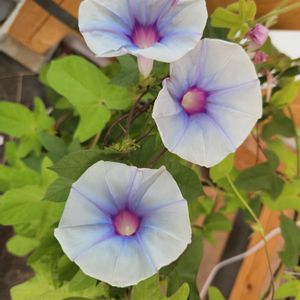 連投ですみません🙇🏼♀️ そろそろ終わりかなぁ?と 思っていましたが ⬆️宇宙朝顔 ⬇️朝顔 元気いっぱい咲いてました😊