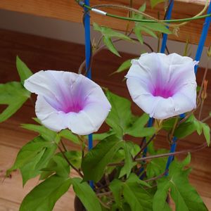 今年の朝顔🌸 盆栽仕立てにしたくてたくさん摘芯したらお花は咲きませんでした ふつうの朝顔では難しかったようだ 外に出して自由にしたらようやく咲かせてくれた 朝顔の幻想的な色がやっぱりすきだなぁ💜