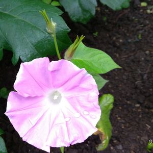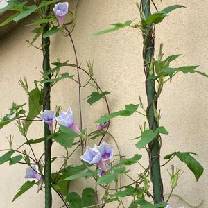 宇宙朝顔咲きました ぶたうさぎさんから頂いた種からやっと一株だけ育ちました。 でもツルが伸びずに蕾やっと3つだけです。 この時期に咲いたのも、ツルが伸びないのも何故かな?