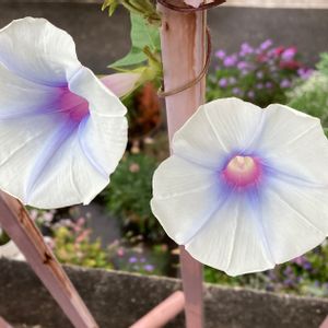 平成22年に宇宙飛行士の山崎直子さんと宇宙に行った朝顔の子孫種を今年もらい、花を咲かせましまた。 なんとも言えない宇宙の広がりを感じさせる色です☺️
