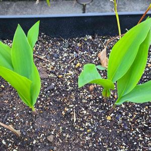 「鈴蘭の新芽」 1週間程前は出ていなかった鈴蘭の新芽 昨日気が付くと、こんなに大きくなっていました。 今年投稿した鈴蘭は、右上と左下の枯れているのがそうです。 この鈴蘭は、花が終わった頃にメルカリで購入しました。 ダメになったのかと思い、今年はHCで咲いているのを買って投稿しましたが、こうして出て来てくれたので嬉しいですね。 花が咲いてくれるのが楽しみです🎶✌️😊