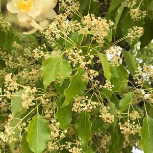 おはようございます😃 隣の公園で、楠木の花が、満開です。 初めて見る、クリーム色の小さな花に、感動しました。