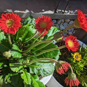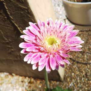 夏越し 室内冬越しを経て また咲き始めた ガーベラ ガルビネア🌼 去年は確か4月に降った霙で花が折れちゃったのよね 今年は屋根の下に置くことにしよう😉