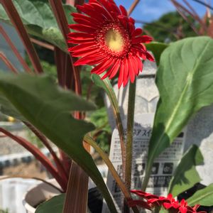 昨日のガーベラ 今日はこんなに開きました マユハケオモトと