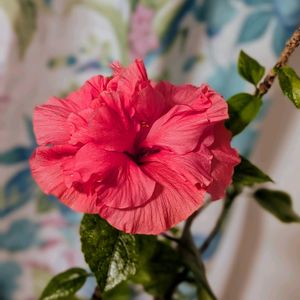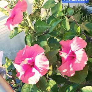 おはようございます😃🌤 ハイビスカス🌺 @AM6:20🌄 ベランダのウエストエンド、朝陽キラキラ二人~は二輪草✌️🎶 我が家歴12年、四度目のベランダ冬越しにご本人はヤル気満々❓️😅 よい一日を🐬.。o○🌈🌏