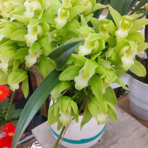 スターダストは ライトグリーンの華やかなシンビジウムです。 お花屋さんで出会いました。🤗 花が星のような形をしていることから スターダスト(星屑)の名前が付いたようです。 真冬の時期に咲いているシンビジウムは 夏の間「山あげ」と言って 花芽が付いた株を涼しい高冷地に移す栽培方法なのだとか…。 インド ネパール ミャンマー 中国原産。 ラン科シンビジウム属の常緑多年草。