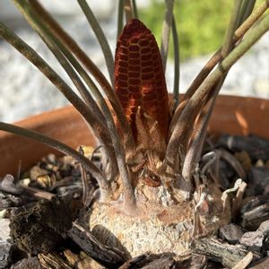 葉の縁の黄色が可愛い。渋い濃緑との対比が綺麗な子です。 奄美大島に自生している、または自生していたソテツです。 蘇鉄は鉄で蘇ることから名付けられたらしい。メネデールとか好きそうですね。