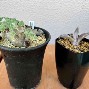 モンソニア ムルチフィダ(サルコカウロン ムルチフィズム)親子 左が親、右が実生(2020.10.31播種)です 成長速度は鈍化してきてますが、種子から2年でここまで輸入株に近付きます サイトやまとめに書いた実生ノウハウが広まり、輸入株顔負けの実生がどんどん流通するような未来を夢見ています