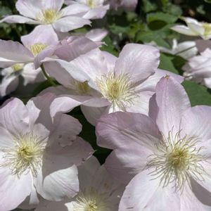 我が家のクレマチス その2 1. 白万重はお迎えした時から 勢力があって 気持ちが良いです💚 どこまでも蔓を伸ばし どこまでもお花が咲いて 素晴らしいクレマチスです👍 2. 水面の妖精🧝♀️手に入れただけで満足していたのですが‥お花も珍しい色で🩵さすがの人気者です❣️ 3. 4.5. どれも華川です 同じ株から咲いた花がこんなに違います‼️ 一度で三度美味しい😋もとい 一度で三度美しいです😍