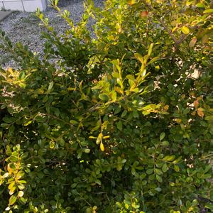 💕外の空気は 美味しいですね💕 (セイヨウツゲ ボックスウッド) 今日は 病院の日で 孫とひ孫が送ってくれたのですが 駐車場が混んでいて 近くのツルハで待っていて🤗 そこ迄 歩いてみました 街路に セイヨウツゲが 並んでいました😊 冬に 葉🍀はブロンズ色になる コレから綺麗な明るい緑に❣️ 陽のあたる場所は 緑🍀葉になってきてます 春には 目立たない小さな 淡い黄色の花が咲く? 白い花? と書いて有るのも有ります どちらでしょうね🤣❓ 雌雄があるとの事 コレは 花芽なのでしょうか❓ また 2週間後に 行くので 楽しみです(*´艸`)☺️