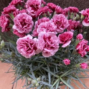 大輪ナデシコ スープラピンクが、咲きました。🌸💗 2021年春に、お迎えました。 2年間良く咲いてくれましたが、昨年、ヨトウムシとウリハムシに、花も葉も噛られて、消えてしまいそうでしたが、ほんの少し残り、秋に植え替えしてあげたら、春に成り育ち、咲いて来ました。 嬉しいです。🎵😍🎵 咲きはじめは、大きいお花でしたが、咲き進むと、だんだん普通のナデシコのお花の大きさです。😄 ②カーネーション バンビーノ 2022年春に、お迎えしました。 今年も、少しずつですが、 咲いてくれています。🌸 嬉しいです。🎵😍🎵 咲いた時は、少し色濃い目です。咲き進むと、優しいピンク色に成ります。 可愛いです。😍