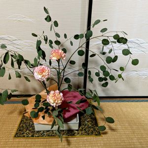 お祝いの場のために生ける時は、より豪華な雰囲気になるように心がけること。 もし花材の量や種類が十分でない場合は、紙や布を配置することで、華やかさをプラスすることができると学びました。 少しの工夫をするだけでも、印象がアップするなぁと思いました✨