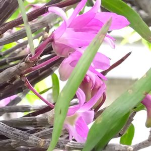 紅花セッコク咲きました🎶 二枚目閲覧注意(蛾) 綺麗な蛾ですけど、羽化したばかりの様で何処で羽化したのか?😅