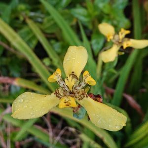 🌼トリメジア・ステイアーマーキー 🏷️日曜ビタミンカラー♪ 間に合いますように💛 残念ちょっと遅刻おまけしてね🙏 別名オキナワシャガ と聞いた記憶があります。 上記訂正いたします🙇♀️ あやめ科ネオマリカ族 🚨キバナアメリカシャガでした) 🙇♀️ちょっと気になったので Google先生に🔍24時35分 近年道路植栽でもよく見かけるようになりました💛 雨が大好きなお花です。 早朝よく晴れていて水撒きしてたら沢山の蕾 スマホ📱取りに行ってる間に開花💛 「アレ今日は晴れてるけどなぁ〜?」 勘違いしてるよ と思ってたら 1時間後突然の土砂降り すごいね 植物の能力🫢 2025年7月6日撮影 沖縄県那覇市首里にて 追伸 早々と寝落ち後 夜中と思って目覚めたら23時30分 間に合うかもと思いつつ他の事に気が行き 間に合わず‥でした😅 いつも自分を過信しがちな 注意力散漫 の発達特性 の持ち主です。