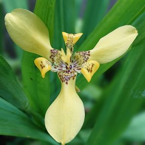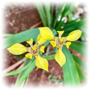 先日(10月13日)の蕾が咲きました トリメジア・ステーヤーマーキー アヤメ科ネオマリカ属の熱帯性多年草 学名「Trimezia steyermarkii」 別名「ネオマリカ・トリメジア」 「イエローウォーキングアイリス」 花言葉「夫婦愛」「結ばれる」 朝に開いて昼に閉じる1日花 人気の投稿に入りました 10月19日 ありがとうございます 🙇♂️🥰 車庫にて