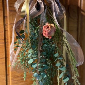 スワッグ仕立て直し 家のあちこちに散らばったここ3年弱に溜まった庭の草花のドライフラワーを、えいやっ!と処分して。 でも全部は寂しい😢 大好きなミューレンベルギアに、抜いちゃったタンジーや、ユーモラスなニゲラ、アナベルなんてまだ今年の子だし。 なので、捨てにくいものは、少しずつ、徐々に🤎の法則。