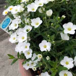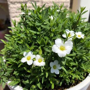 こんにちは☁️ アレナリア モンタナ GSを始める前からいるお花 昨年、バッサリと切り 冬、心配になるような姿でしたが コンパクトながら可愛いお花が咲きました🌼 向こうに見えるのは 昨年お迎えしたアレナリア レモンサマー🍋 無事冬越しできました💕 昨年は名前間違えて😅 レモンサワーだと思ってました😂 冬に強い子だ〜い好き💗 良い一日をお過ごし下さいね〜