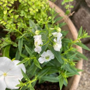 名前を失念、、綺麗に咲いてます✨ 日陰の庭に白は映えますなぁ☺️