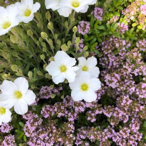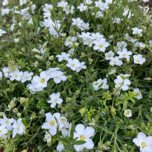 今日は雨です🌧️ なので2日前のpicを🤗 レモンの木の下で過ごして3年、昨年はまばらにしか花を付けなかったのですが、今年は一面に広がって花もたくさん咲き始めました💕🎶 実は名前も忘れてしまっていて検索してアレナリア・モンタナと知りました😅