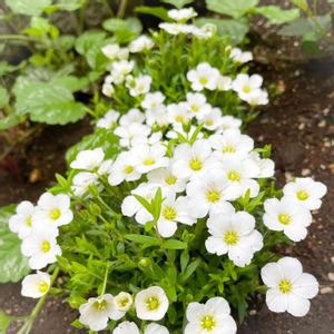 アレナリア モンタナ🌼 花壇に植えて3年目、今年も元気に咲いてくれています😆🎶 ちょうど花がたくさん咲いてきたぞ〜って頃に大雨が降るので、なんか綺麗に咲き揃いません😅💦 次の蕾たちに期待☺️✨