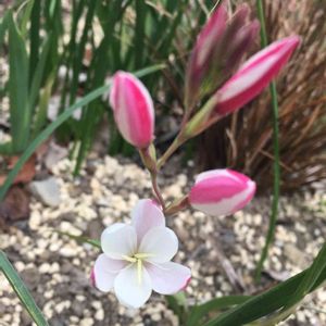 この子はイキシア? でしょうか⁇ 赤い子もいます! 💐トリトニアと判明❣️