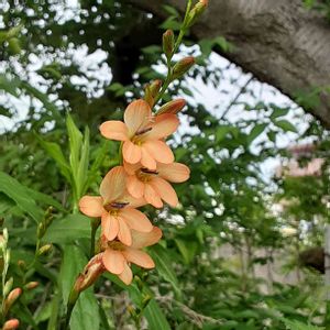 前回は花が重なって一番上の一輪しか顔が見えなかったトリトニア、今日は複数顔が見えるように咲いてた。現在白花が3穂、オレンジが1穂咲いてるがたぶん終わりは近い。