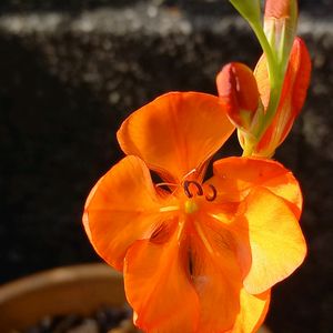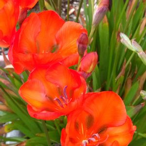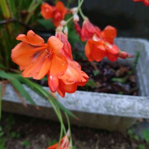 おはようございます👋 トリトニアが咲きました🧡 オレンジ色のフリージアにちょっと 似たお花で丈も小さくて可愛いです😊 花友さんから✨🎁✨感謝です😌💓