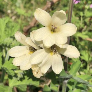 この間まで 水仙、シラー、花ニラ等々 咲いていた空き地…雑草の中で ①トリトニア💛 後ろにダッチアイリス💜 ②ハタケニラ🤍 が急激に咲き始めました❇️