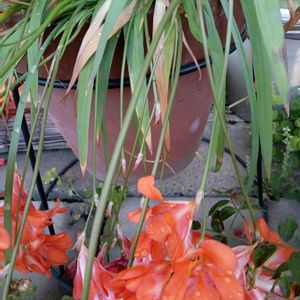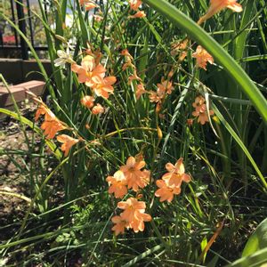 末期だろうと思ってたトリトニアオレンジ花。3房に増えてて意表を突かれた。