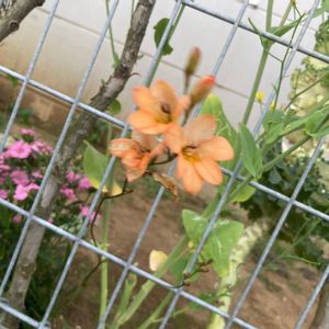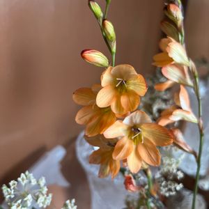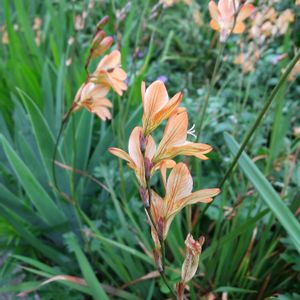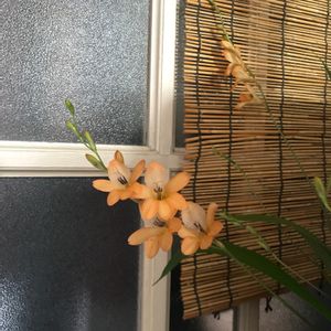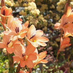 *トリトニア**イキシア* 風にゆらゆら揺れて咲いています。💛💗