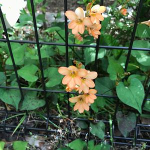 終わりかけのモッコウバラが、向こうに見えます。 ステキなオレンジ。 ゴールデンウィークに、突入です。 今日は、昭和記念公園に行きます🎵 花の名前が、違っていたような。トリトニアと、言うことで、お願いします。